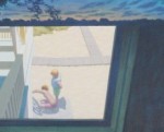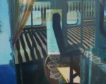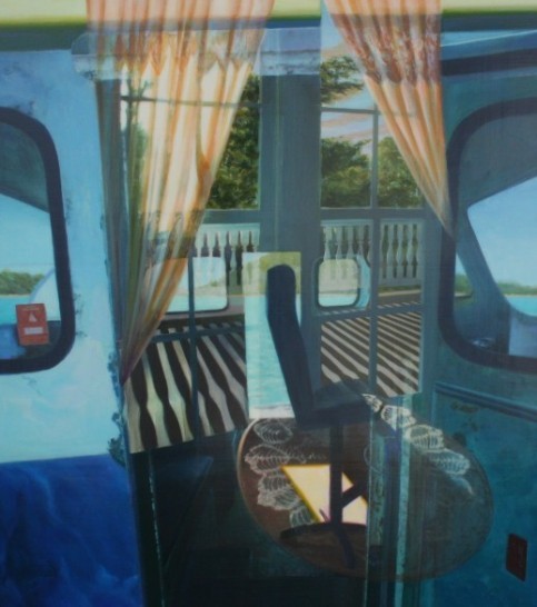 Double exposure, layers of symbolism and meaning, interwoven images make these paintings complex and metaphorical. He starts with a film photograph, and intentionally exposes another image on top creating a double exposure photograph. He uses this as a point of departure.