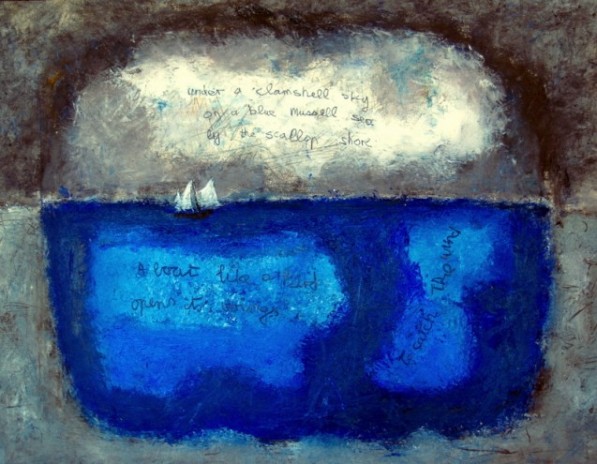 Scottish born which shows in these austere and minimal landscapes of blue, white and green. He lays paint down thick with an abandon just this side of reckless. They are highly stylized islands, boats and clouds that are rendered in their most elemental and pure shapes. One of my favorite painters.