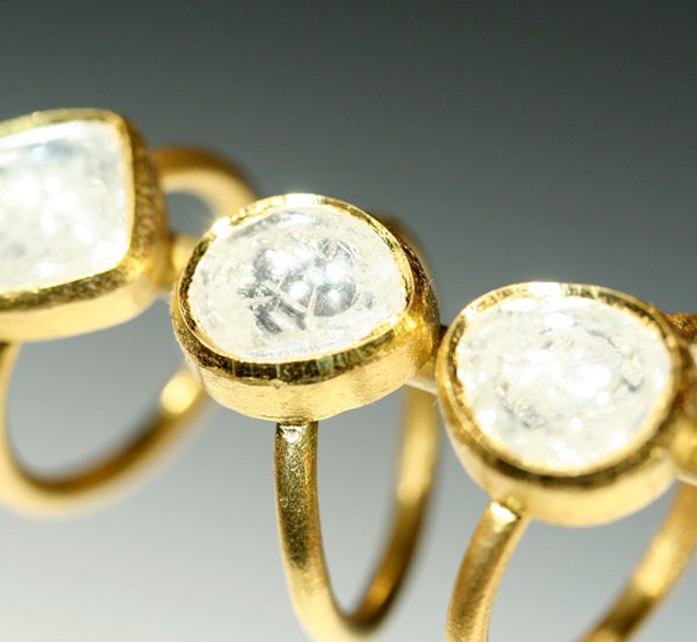 Timeless traditional mughal jewelry from India. Diamond, enamel and 18kt of exquisite detail and embellishment. Every square millimeter of surface is considered and enhanced with makle diamonds and translucent enamel floral motifs and geometric patterns. This is dress up jewelry that will make you feel like a princess in an exotic court. The large pieces can transform an outfit and the more modest earrings, pendants, and rings can evoke a joi de vie. Popular with young and old. Prices range from $150 to $4000.