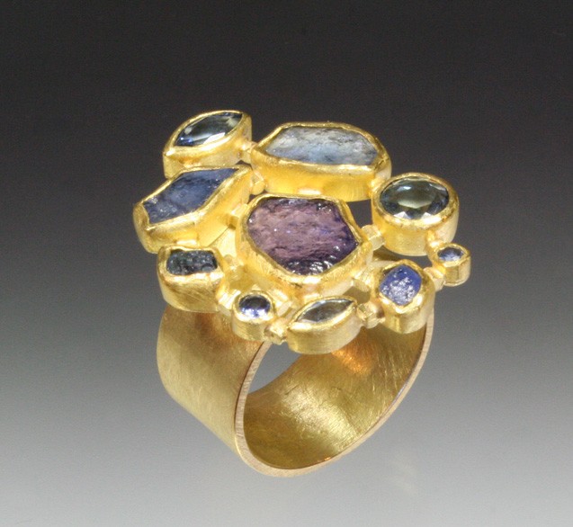 German born but living in San Francisco, Petra loves to take less rare gemstones and small talismans and elevate them to objects of beauty and respect. She bezel sets in gold and arranges them together with legs, pegs and bridges. Sometimes web like, always delicate and lyrical with a dash of irreverent humor. Best known for earrings, necklaces and brooches. Prices range from $650 to $8000.