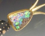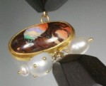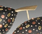 Black ebony, pearls with gold studs, and mystical shapes of the cosmos are the design vocabulary found in this light-weight and big look jewelry. She likes to carve the ebony into geometric forms reminiscent of crystals. $500 to $2000.