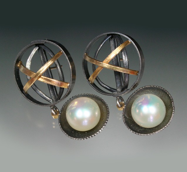Good things come from Nebraska, like the linear aesthetic of Sydney Lynch. Like notes on a scale, he vocabulary of shapes and gemstones are connected to each other with wires and links. She embraces texture both in the tactile surface of her metal surface and juxtaposition of colors and personalities of her gemstones. She likes to mix dark patinated metal with 18kt yellow for an effect of depth. Earrings, necklaces and bracelets from $500 to $5000.